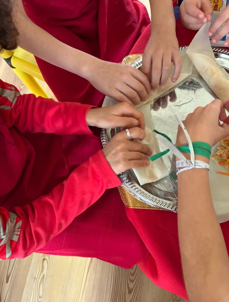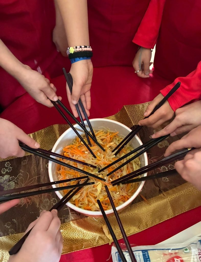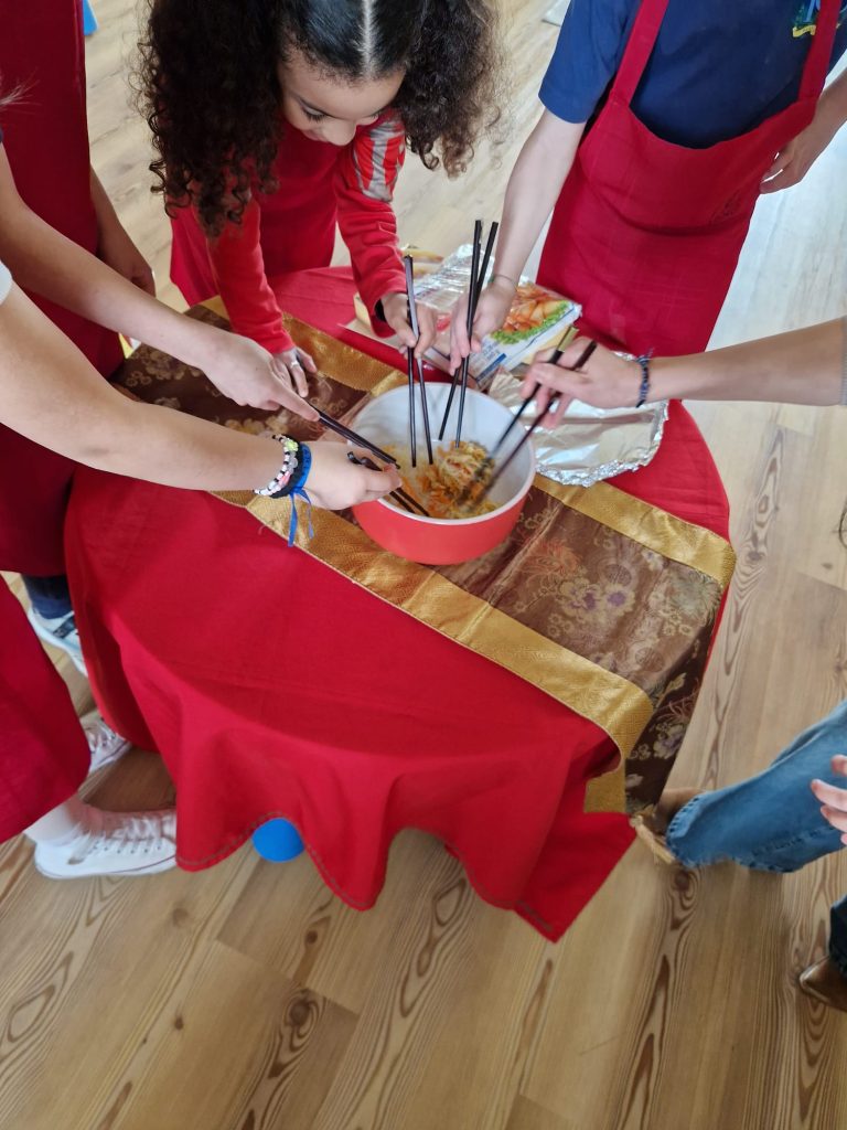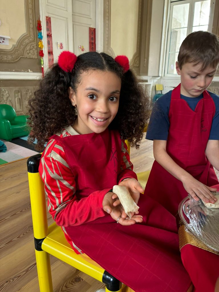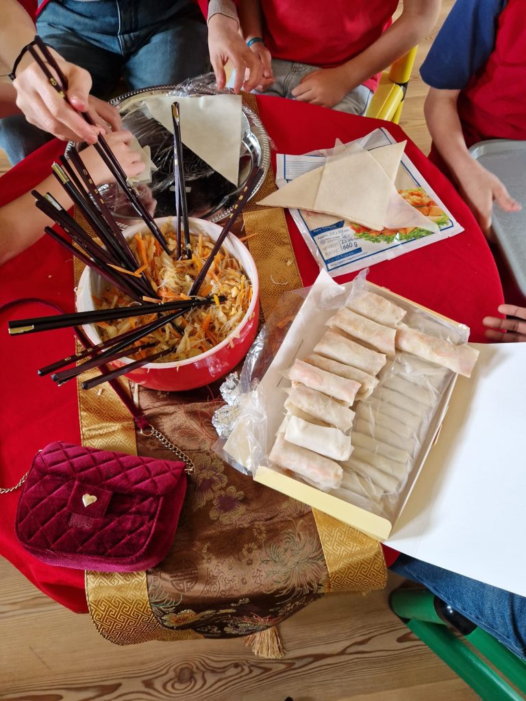 Em honra do Ano do Cavalo de Fogo, os nossos meninos e meninas vestiram-se de vermelho (que representa boa sorte e prosperidade) e decoraram o salão, onde fizeram rolinhos primavera com papel de arroz e aprenderam a forma correta de manusear os Kuàizi (pauzinhos chineses) à refeição.